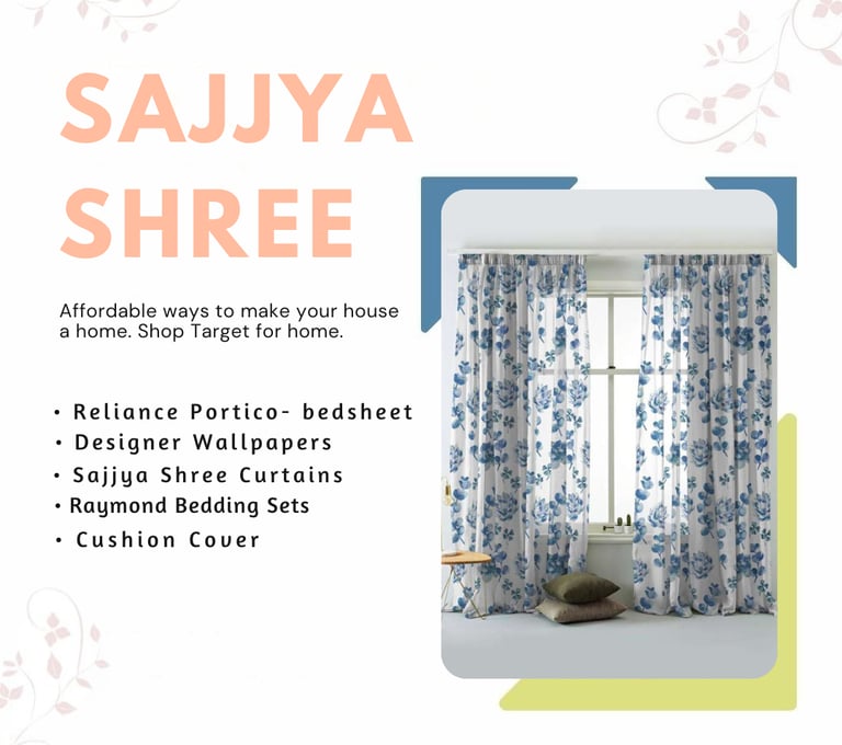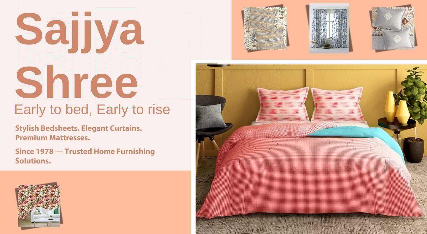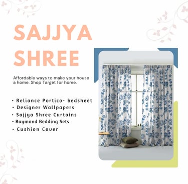 Sajjya Shree is your one-stop destination for quality home furnishings, bedding, and interior accessories. We proudly serve top brands like Reliance Portico, Raymond, Sleepwell, Curl-On, Neel Kamal, and more. From luxurious bedsheets and curtains to long-lasting mattresses, we deliver comfort and style under one roof.